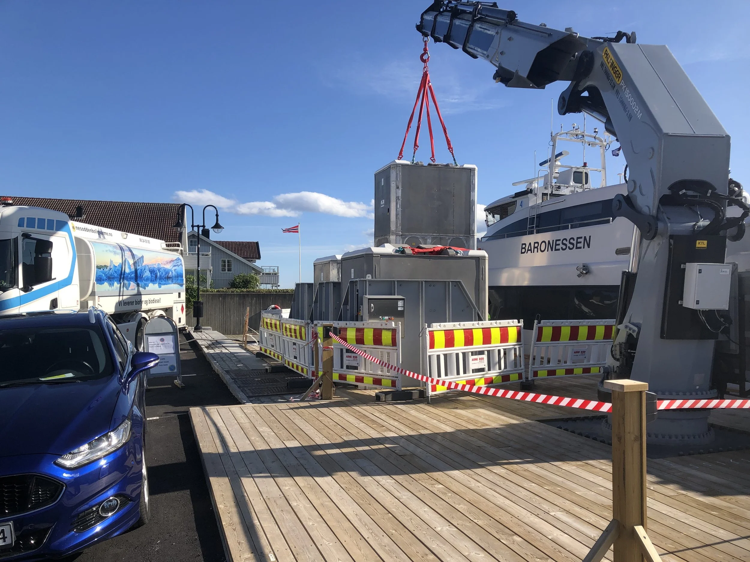FØRST: De 16 tonn med litium batterier MÅ heises vekk under Drøbak Havnefestival helgen 25 -26.07 grunnet brannfare / eksplosjonsfare / sabotasje. Brannteknisk er det uforsvarlig å ha 16 tonn litium batterier åpent i en Havnefestival.